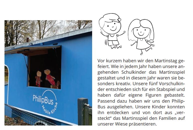 PhilipBus ist die mobile Kirche des Pastoralen Raums Warstein, die von den kirchlichen Gruppierungen ausgeliehen und genutzt werden kann. Es handelt sich hierbei um einen Schäferwagen, der als kleine mobile Kirche gebaut ist.