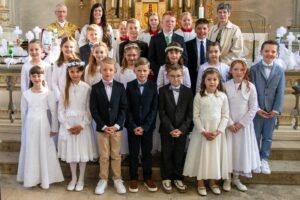 Die erste Heilige Kommunion empfingen: Thea Kathrein Auer, Ronja Katharina Brandenburg, Noah Bühner, Julia Cramer, Justus Alexander Fandrich, Moritz Freudricht, Helena Gierke, Pit Gocke, Jonathan Hötte, Greta Luisa Koch, Jonah Przybilla, Lenja Pütter, Marit Rinschede, Lukas Schmitz, Marie Schnick, Till Schöne, Charlotte Schulte, Fine Werner