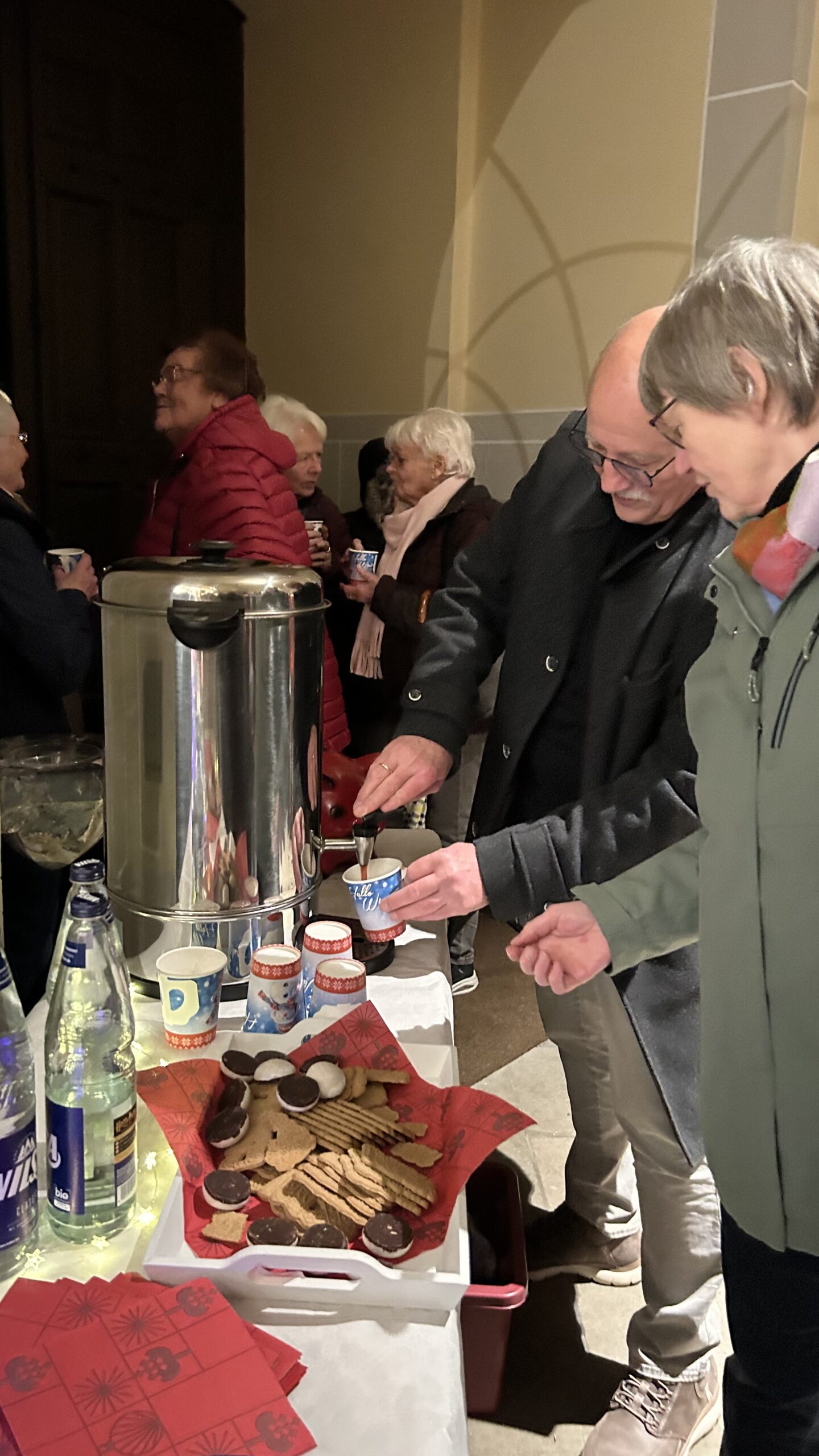 Im Anschluss an das gemeinsame Singen überreichte Weber dem Organisten noch ein kleines Dankeschön und lud alle Besucher zu einem gemütlichen Beisammensein bei Punsch und Keksen ein.