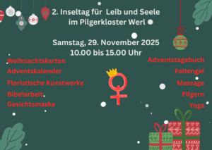Herzliche Einladung an engagierte Frauen im Dekanat Lippstadt-Rüthen zum 2. Inseltag für Leib und Seele im Pilgerkloster Werl. am Samstag, 29. November 2025.