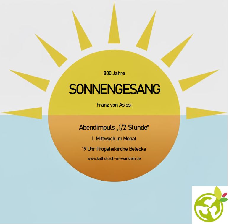 Der „Sonnengesang“ des Franz von Assisi steht thematisch ab Dezember im Mittelpunkt des „Abendimpuls 1/2 Stunde“. Bereits im siebten Jahr findet dieses Angebot der Kirchengemeinde St. Pankratius Belecke statt, das sich ausdrücklich an alle Interessierten im Stadtgebiet wendet. Jeweils am ersten Mittwoch im Monat wird um 19 Uhr in die Propsteikirche zu Gebet, Gesang und Stille eingeladen. Die Vorbereitung der „1/2 Stunde“ übernehmen abwechselnd Gruppen der Gemeinde, Freundeskreise oder auch Einzelpersonen. Jede und Jeder ist dazu eingeladen, eigene Ideen einzubringen oder auch einen Abend selbst zu gestalten.